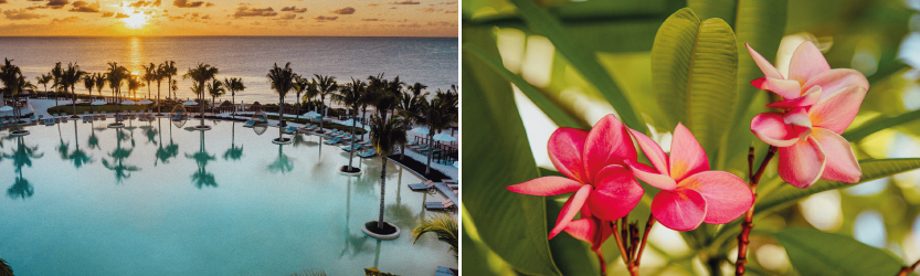 En República Dominicana, la vegetación tropical crea un ambiente exuberante. Palmeras cocoteras y arecas enmarcan senderos; las heliconias atraen aves; los plataneros refrescan el ambiente de manera natural; y especies ornamentales como ixoras, crotos y frangipanis aportan color y biodiversidad.