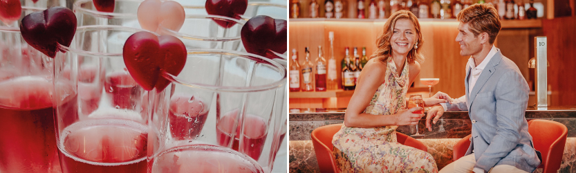 La experiencia gastronómica es una parte esencial de la celebración. Durante estos días, se ofrecen cenas especiales de San Valentín, a menudo acompañadas de cava rosado o cócteles temáticos como el “CosmoLove” en los lobbies de los hoteles.