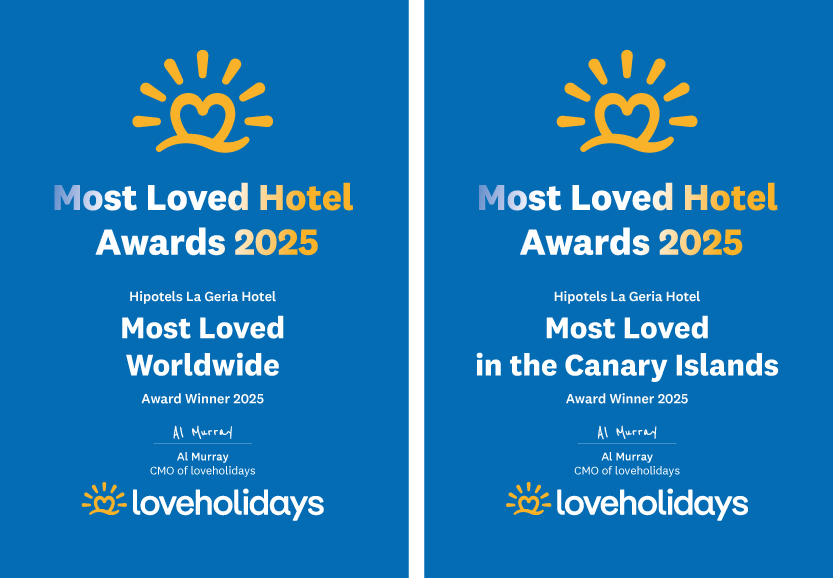 Hipotels La Geria auf Lanzarote wurde bei den loveholidays Most Loved Hotel Awards 2025 mit gleich zwei außergewöhnlichen Preisen ausgezeichnet: Most Loved Worldwide und Most Loved in the Canary Islands. Diese doppelte Auszeichnung spiegelt die Wertschätzung, Treue und Zufriedenheit tausender Gäste wider.